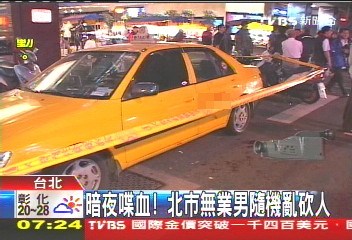 沒想到這名男子離開之后,還騎著腳踏車沿路隨機砍人,在經(jīng)過一輛出租車旁時,又對著司機狂砍,另一名經(jīng)過的路人也遭殃,一個晚上,總共4名無辜人士被他砍傷,其中一名在送醫(yī)過程中,已經(jīng)沒有生命跡象,目前還在搶救中。