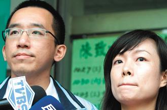 陳致中召妓案16日上午判決,陳致中被認(rèn)定有召妓,陳致中(左)召開(kāi)記者會(huì)表示會(huì)上訴到底,黃睿靚(右)則是眼眶泛紅表達(dá)對(duì)丈夫支持,也相信他絕對(duì)沒(méi)有召妓。 圖片來(lái)源:臺(tái)灣“聯(lián)合新聞網(wǎng)”