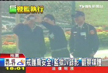 報(bào)道稱(chēng),為了陳水扁的安全,臺(tái)北監(jiān)獄立刻研擬如何防范。5日上午,臺(tái)北監(jiān)獄人員就在陳水扁會(huì)客必經(jīng)的大道前東指西指,不時(shí)還蹲下查看測(cè)量。最后,發(fā)現(xiàn)有媒體就在對(duì)面,臺(tái)北監(jiān)獄人員直接拿出DV觀察錄像。