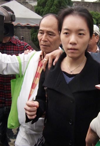 陳水扁的女兒陳幸妤(中)10日首度前往臺(tái)北監(jiān)獄探視陳水扁。8日,陳水扁的兒子陳致中曾前往臺(tái)北監(jiān)獄探父,陳致中帶著一些家常菜給父親品嘗,是第一位探監(jiān)的家屬。圖片來(lái)源:臺(tái)灣“中央社”