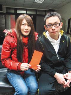李雅雯和詹旻鈞拾金不昧,把撿到的十萬元送還失主,失主感謝送上六千元紅包。