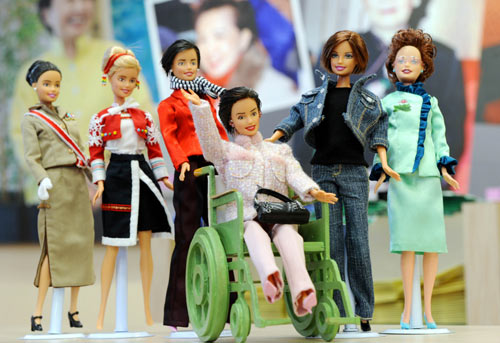 臺(tái)灣地區(qū)歷屆領(lǐng)導(dǎo)人的夫人禮品屋中,歷任“第一夫人”的手工公仔最吸睛,但售價(jià)新臺(tái)幣4000元起跳。右起為前副領(lǐng)導(dǎo)人呂秀蓮、馬英九夫人周美青、陳水扁夫人吳淑珍。圖片來源:“中央社”