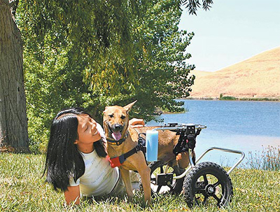 有了量身打造的輪椅,卜派跟大多數(shù)的“狗狗”一樣,可以跟主人一起散步、慢跑、旅游,茱蒂也拍攝了許多照片表現(xiàn)卜派殘而不廢的一面。卜派的照片在數(shù)千張寵物照片中脫穎而出,贏得世界杯寵物攝影比賽冠軍。