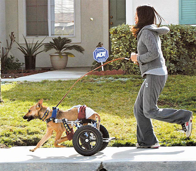 3年前,當(dāng)時(shí)僅5、6個(gè)月大的臺(tái)灣流浪狗卜派,因車禍導(dǎo)致下半身癱瘓、大小便失禁。臺(tái)灣動(dòng)物緊急救援小組志工倪京臺(tái)說:“醫(yī)師建議安樂死,但它驚恐無助的眼神讓志工舍不得,將它的故事發(fā)表在網(wǎng)站上,同年7月由在美國擔(dān)任會(huì)計(jì)的茱蒂認(rèn)養(yǎng)!