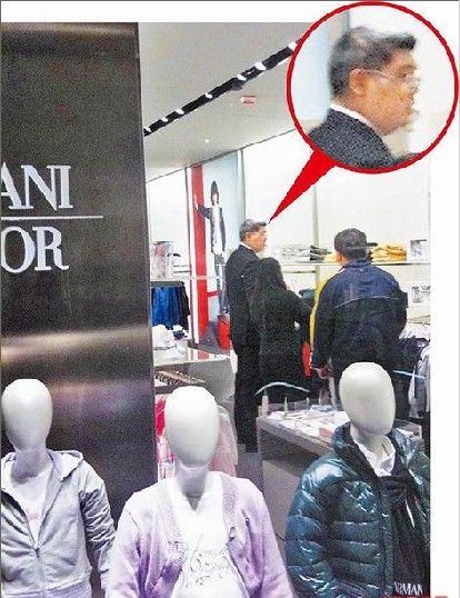 臺(tái)灣游客目擊連勝文前天(11日)下午約5時(shí)30分,現(xiàn)身香港中環(huán)置地廣場(chǎng)對(duì)面、遮打大廈內(nèi)的Armani綜合店,悠哉血拼Armani Junior童裝,身旁不見太太蔡依珊,只有一名男子相陪。