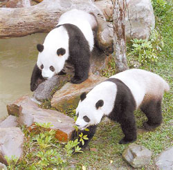 團團圓圓在臺北市動物園的戶外展區(qū)。圖片來源:臺灣“中廣新聞網(wǎng)”