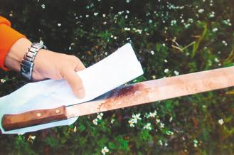 警方花了半小時(shí),在公路邊坡草叢找到兇刀。圖片來(lái)源:臺(tái)灣《聯(lián)合報(bào)》