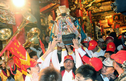 新港奉天宮開臺媽祖于9日晚上6時起駕,展開為期9天8夜的繞境,將走過13鄉(xiāng)鎮(zhèn)、100間廟宇為嘉南平原這塊土地祈福;“立法院長”王金平、嘉義縣長張花冠、嘉義市長黃敏惠、國民黨籍“立委”翁重鈞、民進(jìn)黨籍“立委”陳明文等人皆到場徒步扶轎。