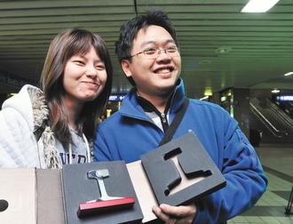 2011年情人節(jié),臺(tái)鐵推出500組刻上甜言蜜語的“鐵不出軌”愛情文鎮(zhèn)。圖片來源:臺(tái)灣《聯(lián)合報(bào)》
