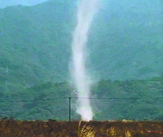 中國臺灣網(wǎng)3月3日消息 據(jù)臺灣媒體報(bào)道,出現(xiàn)在沙漠中的陸上龍卷風(fēng)竟然在臺灣屏東縣發(fā)生。日前,屏東一男子開車行經(jīng)一處農(nóng)地,他先看到塵土飛揚(yáng),后來驚見兩道半徑逾5米的龍卷風(fēng),并逐漸靠攏,30秒后結(jié)合在一起往南移動,約10多層樓高。約5分鐘后,龍卷風(fēng)離開,農(nóng)地才歸于平靜。