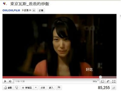 據(jù)臺灣“今日新聞網(wǎng)”報道,比起90年代,現(xiàn)在的臺灣電視廣告顯得乏味僵硬,當(dāng)網(wǎng)絡(luò)游戲廣告與看板式廣告充斥的年代,臺灣觀眾要尋求30秒的感動,必須得從網(wǎng)絡(luò)去挖掘。最近兩段日本東京“瓦斯”廣告影片就發(fā)揮催淚效果,讓許多臺灣網(wǎng)友感動到不能自己。