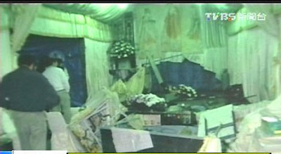 酒駕男子從靈堂后爬出嚇壞治喪家屬。 圖片來源:臺灣TVBS電視臺