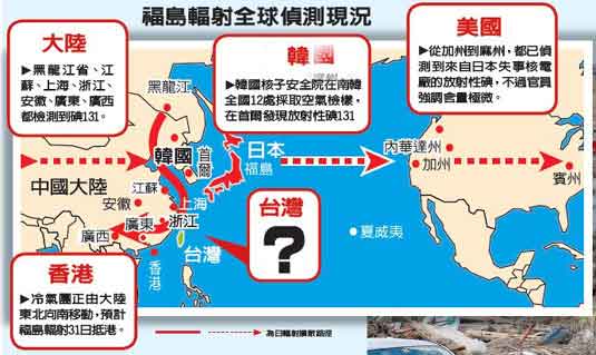 媒體報(bào)道,近日在大陸東北部和部分東南沿海省份,以及韓國的首爾,都測到人工放射性碘131。林秀雯認(rèn)為,以風(fēng)向來看,這些地區(qū)測到的輻射,應(yīng)該是隨著西風(fēng)帶,經(jīng)過東太平洋、美國等地區(qū),繞了一圈后再飄到華北和韓國一帶。
