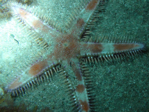 據(jù)臺(tái)灣《蘋果日?qǐng)?bào)》網(wǎng)站報(bào)道,臺(tái)灣墾丁公園管理處研究人員日前進(jìn)行海底夜間調(diào)查時(shí),在核三廠出水口附近水深9米處,發(fā)現(xiàn)一只體色接近暗紅褐色的海星,經(jīng)公立自然科學(xué)博物館趙世民博士鑒定,為臺(tái)灣海域不常見的物種“多棘槭海星”。