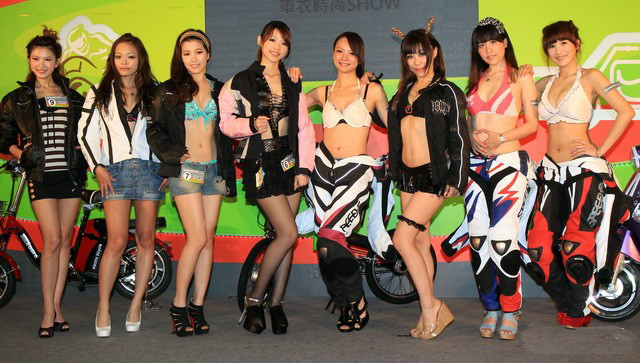 臺(tái)灣2011年摩托車情人選拔賽中的辣妹。圖片來源:臺(tái)灣媒體