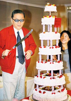 李敖開(kāi)心切7層蛋糕,昨天出書(shū)又慶生,意義重大。圖片來(lái)源:臺(tái)灣《中國(guó)時(shí)報(bào)》