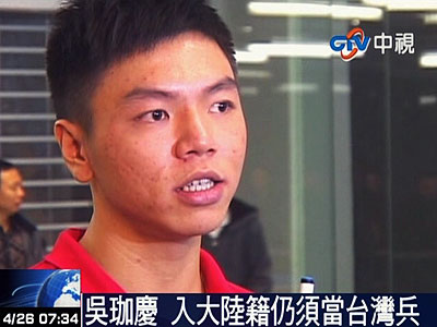 資料圖:吳珈慶雖入大陸籍,但依照臺灣方面的相關(guān)規(guī)定,他仍須回臺面對“兵役問題”。