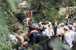 嘉義地檢署檢察官除了確認(rèn)肇事樹種為森氏櫟外,檢方與林業(yè)專家還檢查倒伏鐵軌的樹干斷面,判斷腐朽程度與范圍。圖片來源:臺灣《中國時報(bào)》