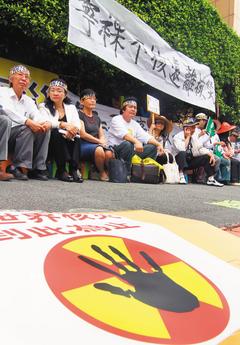 臺灣環(huán)保團體昨天到臺電大樓前,進行24小時反核靜坐抗議。圖片來源:臺灣《聯(lián)合報》