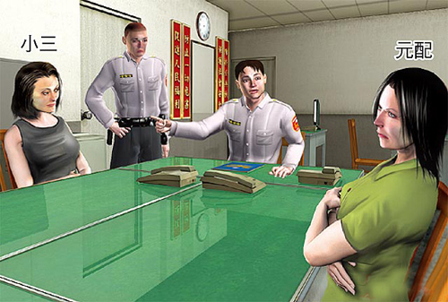 元配警局見小三示意圖,中年男子偷情馬上風(fēng)猝死,老婆接獲警方通知才知有“小三”。警員擔(dān)心雙方恐引發(fā)暴力沖突,在場戒護(hù)。圖片來源:臺灣媒體
