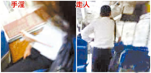 男子在公交車搓弄下體的過程(左圖)及下車時的身影(右圖),均被女學(xué)生拍下po網(wǎng)。圖片來源:臺灣媒體