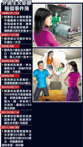 劉妻怒告兩人通奸,但因過了追訴期,獲檢方不起訴,隨后改針對通奸生女部分提告索賠300萬元(新臺幣,下同)。劉男向臺中地方法院法官表示,前年9月起傾畢生積蓄,陸續(xù)給妻子3500萬元,后來因汽車旅館通奸也賠了150萬元。法官認(rèn)為,劉男已陸續(xù)給妻子共3650萬元,相當(dāng)于劉男30年的工作收入,應(yīng)已足夠填補(bǔ)妻子的精神損害,駁回妻子求償請求。此外,劉妻曾控告醫(yī)院和丈夫聯(lián)手欺騙,導(dǎo)致丈夫外遇生女,并向臺灣醫(yī)藥大學(xué)附設(shè)醫(yī)院象征性請求損害賠償一元,遭判敗訴。(中國臺灣網(wǎng) 吳斌)