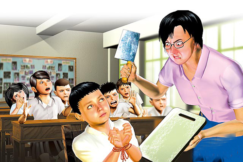 據(jù)報(bào)道,遭捆綁恐嚇的被害男童,成績(jī)不錯(cuò),因患亞斯伯格癥,個(gè)性好動(dòng)、愛(ài)觸碰別人,卻不懂觀察他人情緒。4月29日上午,男童對(duì)班上女同學(xué)又抱又摸,因他過(guò)去也曾有對(duì)女同學(xué)做出同樣行為,陳老師將他叫到講臺(tái)前訓(xùn)話,但男童根本不覺(jué)得做錯(cuò),還以為老師跟他開(kāi)玩笑,仍嘻嘻哈哈的,老師當(dāng)場(chǎng)抓狂,用繩子將他雙手捆綁,并沖至廚房拿來(lái)菜刀、砧板,當(dāng)著全班同學(xué)面前大聲喝斥男童:“我現(xiàn)在是很嚴(yán)肅跟你說(shuō)!”拿起菜刀在砧板上作勢(shì)剁下去,讓全班同學(xué)嚇傻。事后,她要同學(xué)不要向家人說(shuō)起此事,并稱她是為保護(hù)全班學(xué)生!
