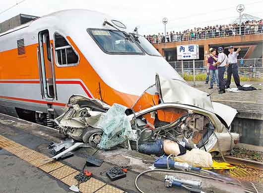 臺鐵臺北運務(wù)段段長蘇仁浩說,車禍發(fā)生于昨日中午12時30分許,當(dāng)時公路與鐵路交叉道柵欄已放下,黃男仍從柵欄縫隙闖關(guān),被通過的南下自強(qiáng)號列車攔腰撞上。由于內(nèi)壢火車站就在該公路與鐵路交叉道以南約300米處,而自強(qiáng)號列車因不?績(nèi)壢站,過平交道時速仍有百公里,撞上的小轎車卡在車頭前,推擠到內(nèi)壢站快過了月臺才停下,小轎車經(jīng)月臺擠壓幾乎完全撕爛。