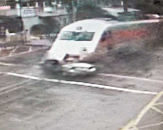 監(jiān)視器拍下轎車被自強(qiáng)號火車撞上的瞬間。圖片來自臺媒