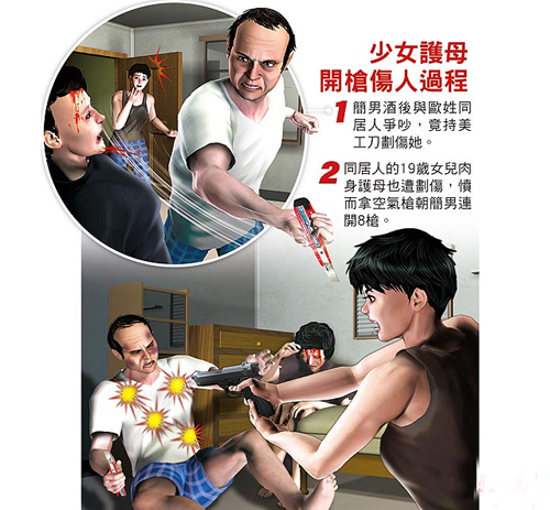 少女護(hù)母開(kāi)槍傷人過(guò)程。圖片來(lái)源:臺(tái)灣媒體