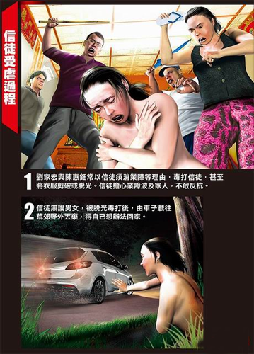 信徒受虐過程。圖片來源:臺灣媒體