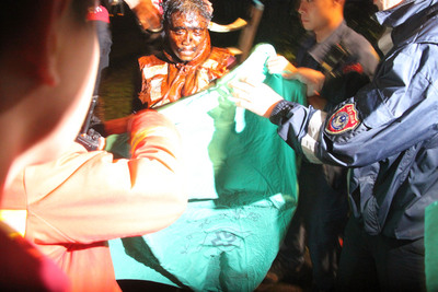 基隆市與新北市萬里區(qū)交界處外海,3日凌晨發(fā)生一艘貨輪擱淺,截至5時,船上21名船員中,有5人罹難、6人失蹤。圖為1名外籍船員在岸邊被發(fā)現(xiàn)時滿身油污,表情驚恐。(圖片來源:臺灣“今日新聞網(wǎng)”)