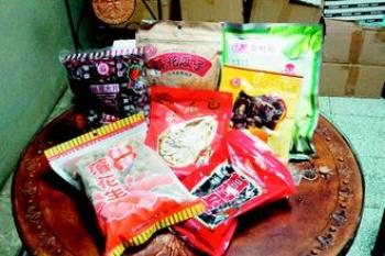 桃園縣衛(wèi)生局配合南投檢警查封“翁財(cái)記”龍?zhí)豆S的瓜子、花生、蠶豆、青豌豆4大類5006包過期食品。(圖片來源于:臺(tái)灣《聯(lián)合報(bào)》)