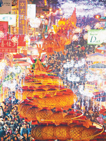 中國臺灣網(wǎng)1月29日消息 據(jù)臺灣《聯(lián)合報(bào)》報(bào)道,年假即將結(jié)束,但全臺陸續(xù)登場的燈會還是延續(xù)著濃濃年味。2012年臺灣鹿港燈會在彰化舉辦,以9條金色飛龍串出千里龍廊,上有金龍、下有人龍,金碧輝煌。(中國臺灣網(wǎng) 李迪)