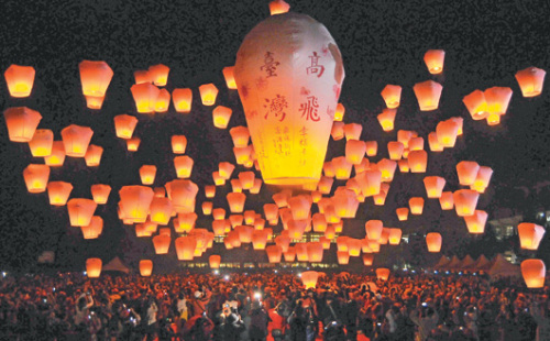 新北市平溪舉辦天燈節(jié),昨晚千盞天燈齊飛,用祝福妝點(diǎn)美麗夜空。(圖片來源于:臺灣《聯(lián)合報(bào)》)