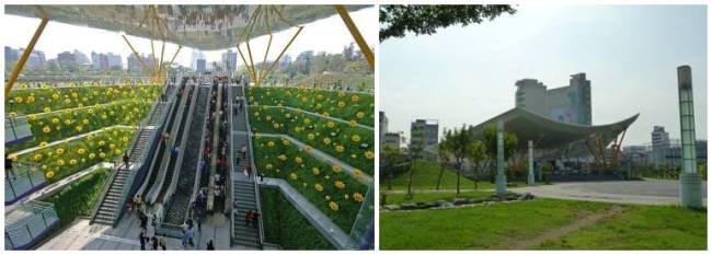 高雄地鐵中央公園站白色飛揚(yáng)的雨庇搭配宛如向日葵田的綠化植栽,讓整個(gè)車(chē)站充滿活力。(圖片來(lái)自網(wǎng)絡(luò))
