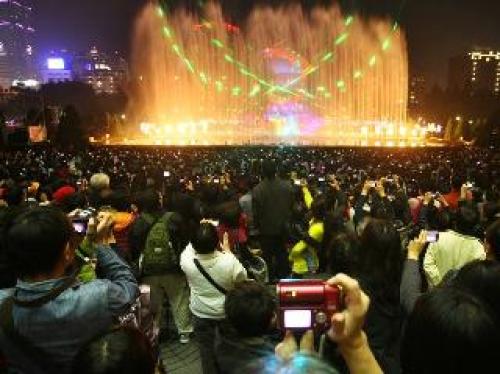 2012臺(tái)北燈節(jié)12日晚間閉幕,臺(tái)北中山紀(jì)念館主燈區(qū)涌進(jìn)大批人潮,把握最后賞燈機(jī)會(huì)。圖片來源:“中央社”