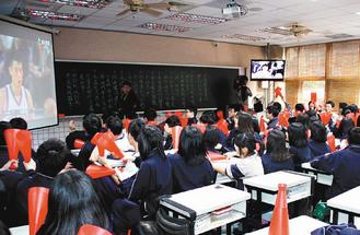 新北市私立南山中學昨天“停課”半天,讓全校師生一起看NBA,為林書豪加油打氣。(圖片來源:臺灣《聯(lián)合報》)