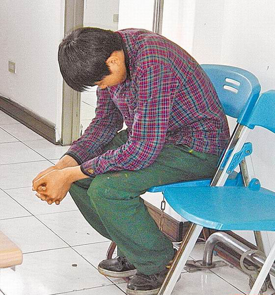黃姓少年被帶回警局后,低頭坐著不發(fā)一語。(圖片來自臺灣媒體)