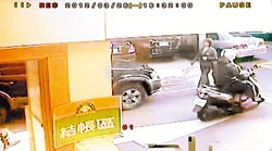 臺(tái)北市南京東路三段的臺(tái)灣中小企銀昨天下午4點(diǎn)多發(fā)生搶案,一名男子藏匿在樓梯間,開(kāi)槍打傷保全人員后,搶走1千多萬(wàn)現(xiàn)金,獨(dú)自騎乘機(jī)車逃逸。店家監(jiān)視器畫面中,疑似嫌犯穿深色衣服騎機(jī)車逃離現(xiàn)場(chǎng),機(jī)車腳踏板處可見(jiàn)塞滿裝錢提袋。(圖片來(lái)源:臺(tái)灣《中國(guó)時(shí)報(bào)》)