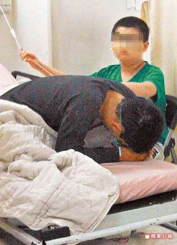 何姓男子的小兒子在醫(yī)院內(nèi),像個(gè)小大人似的照顧已清醒的父親。 圖片來(lái)源:臺(tái)灣媒體