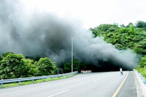 雪山隧道昨天發(fā)生火燒車事故。(圖片來源于:臺灣《聯(lián)合報》)