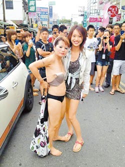 臺灣的網(wǎng)絡(luò)紅人“跳舞姐”現(xiàn)身,民眾上前合影。(圖片來源:臺灣《中國時報》)