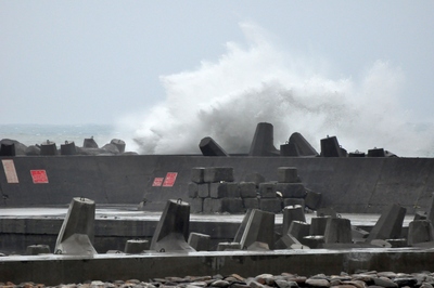 臺風“蘇拉”逐漸接近臺灣,宜蘭南方澳堤防31日出現(xiàn)大浪。(圖片來自臺媒)