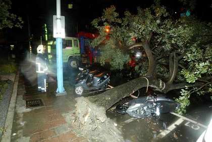 新北市吹9級強風(fēng),樹倒砸車擋路。來源:臺灣媒體