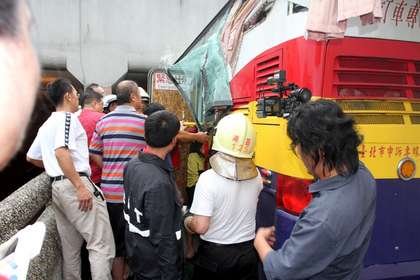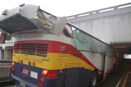 中國(guó)臺(tái)灣網(wǎng)8月24日消息 據(jù)臺(tái)灣媒體報(bào)道,一輛滿載33人廣州陸客游覽車,今下午行經(jīng)臺(tái)灣嘉義市世賢路(四線道)時(shí),誤闖限高2.4米的機(jī)車道,車頂撞上路橋損毀,造成28人受傷送醫(yī)。