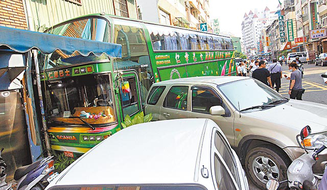 學(xué)生專車昨日沿途擦撞路邊車輛,最后撞上民宅才停住。(圖片來自臺媒)