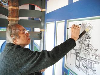 最后作畫身影 彩繪大師陳壽彝今年初為頂新集團(tuán)彰化祖厝彩繪留下的身影,也是他留在民間最后的創(chuàng)作。圖片來源:臺灣《聯(lián)合報》