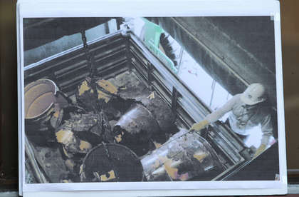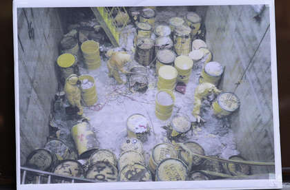 影片拍攝到部分核廢料儲(chǔ)存桶被嚴(yán)重腐蝕,甚至已經(jīng)破裂,周圍環(huán)境看起來相當(dāng)通風(fēng),沒有負(fù)壓處理,也沒在密閉的空間,這種情況下,只要風(fēng)一吹,粉塵便四處飄揚(yáng),一旁工人直接暴露在輻射危險(xiǎn)之下。不過,蔡春鴻說,廠區(qū)一直都配有負(fù)壓設(shè)備,可能是攝像機(jī)沒有拍到。