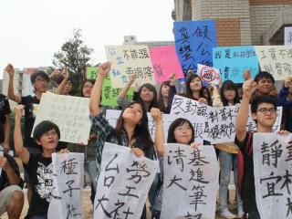 全臺大學(xué)社團30日在臺中串聯(lián),舉著標(biāo)語、高喊口號。圖片來自臺媒